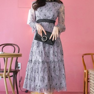 【送料無料】 ワンピース ドレス ミディ丈 シースルー 花柄 レース エレガント 結婚式 パーティ お呼ばれ OP-011IU
