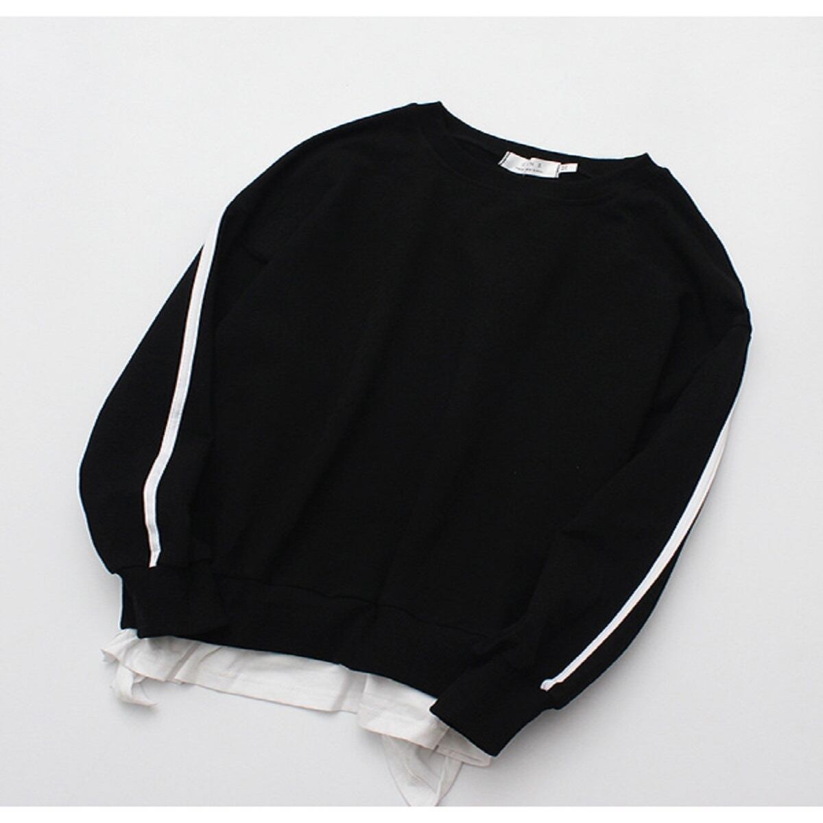 無地にホワイトのライン入りデザインがオシャレ感♪ちょこっと見えるシャツがポイントです☆