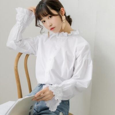 【送料無料】 トップス シャツ ブラウス フリル フレアスリーブ 長袖 シンプル カジュアル 大人女子 大人可愛い オシャレ キュート ガーリー TP-024AU