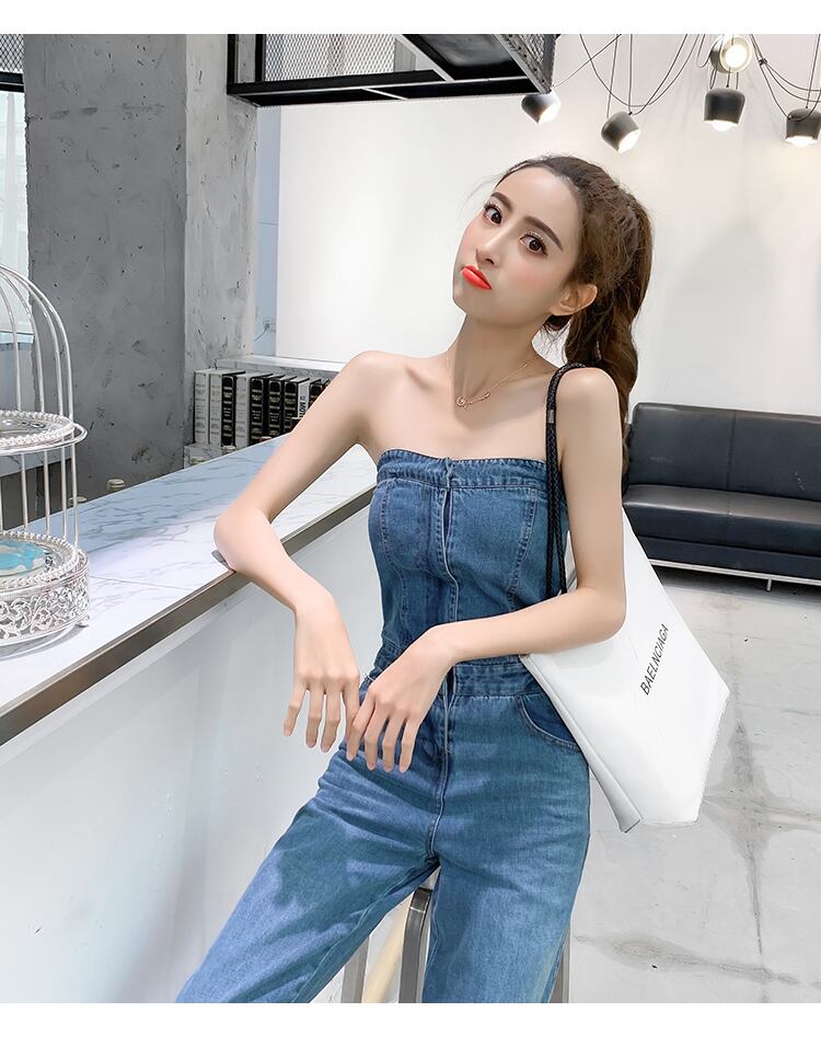 【送料無料】 オールインワン デニム サロペット オフショル オフショルダー 春夏 韓国 可愛い シンプル スリム 細身 ハイウエスト デート 女子会 合コン AI-214KJ