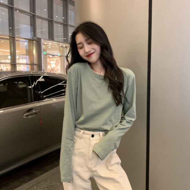 【送料無料】 トップス Tシャツ 長袖 プルオーバー シンプル カジュアル 大人可愛い オシャレ キュート ラウンドネック オフスタイル ガーリー TP-029AU