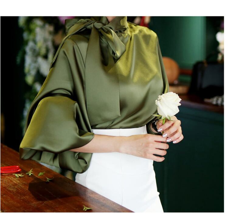 【送料無料】 ブラウス トップス シフォンブラウス リボン エレガント 大人 きれいめ オフィス 通勤 着回し シンプル ホワイト カーキ TP-217KJ