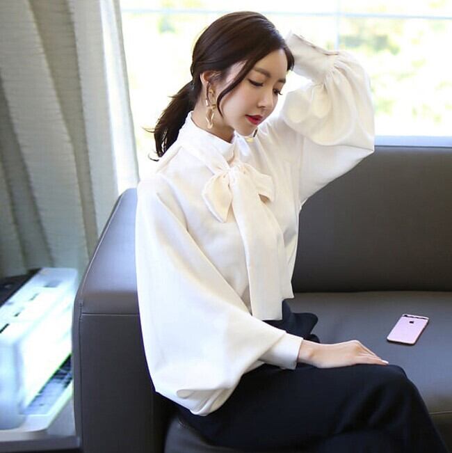 首元の大きなリボンがポイントのシフォンブラウス