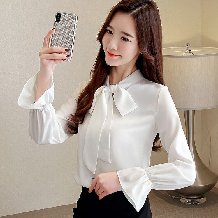 大きなリボンが目を引くシフォンブラウス