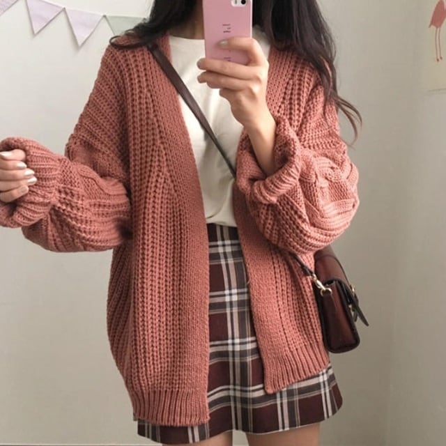 【送料無料】ケーブル編み ニットカーディガン 羽織 アウター ビッグシルエット 長袖 ざっくり シンプル ゆったり カジュアル 大人可愛い ガーリー 着回し デイリー 春 OT-014IU