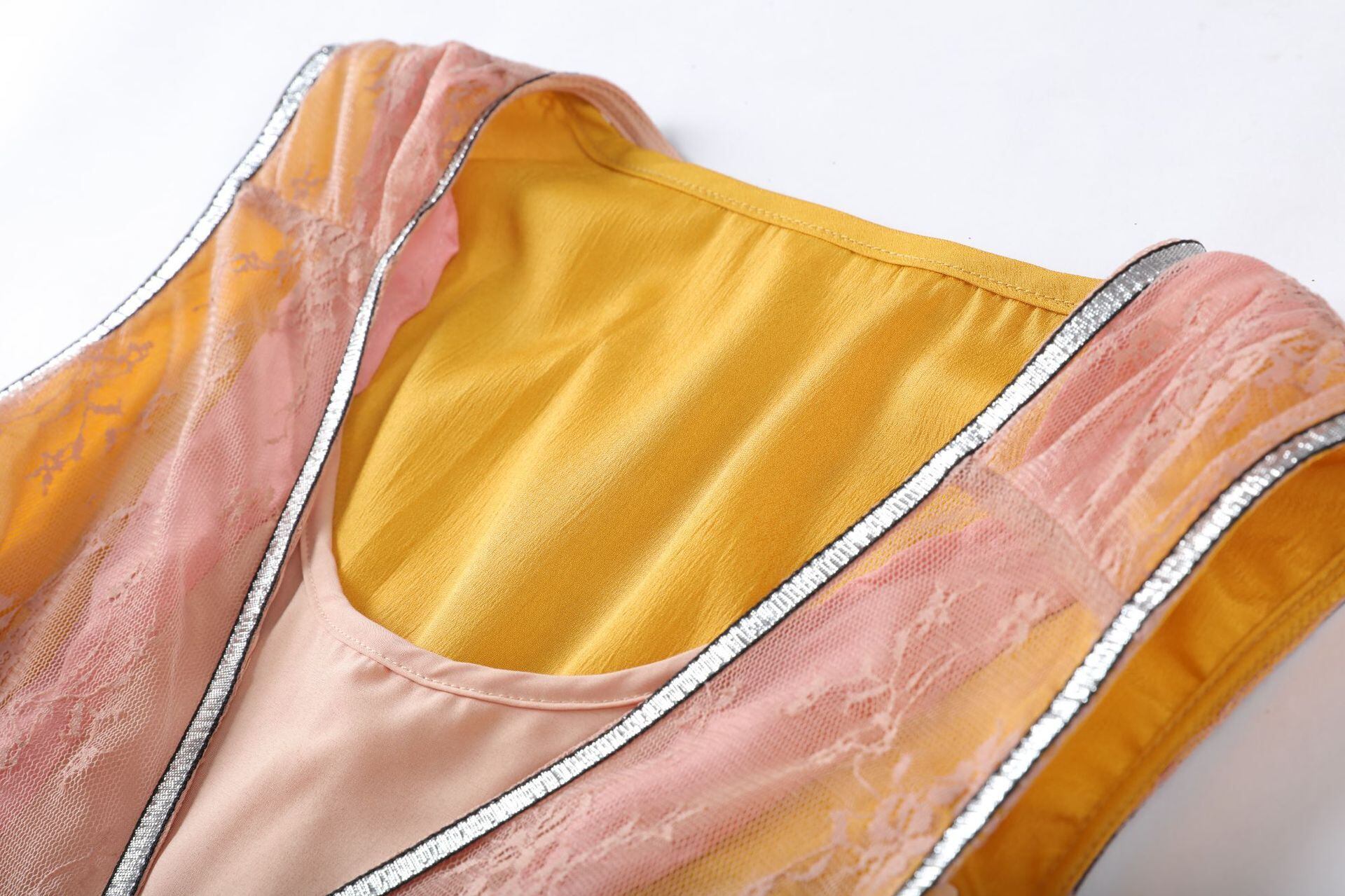 【送料無料】 イエローワンピース ミディ丈 レース 異素材 シンプル ベーシック ハイウエスト ノースリーブ ビーチドレス 大人フェミニン ボヘミアン 春夏 アクティブ レジャー 旅行 リゾート 普段使い デイリー お出かけ デートOP-003PS