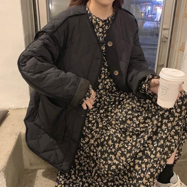 【送料無料】キルティング ブルゾン コート アウター ノーカラー ゆったり ウエストマーク カジュアル ジャケット アウター 大人可愛い ゆるカジ シンプル お出かけ デート 春 OT-019IU