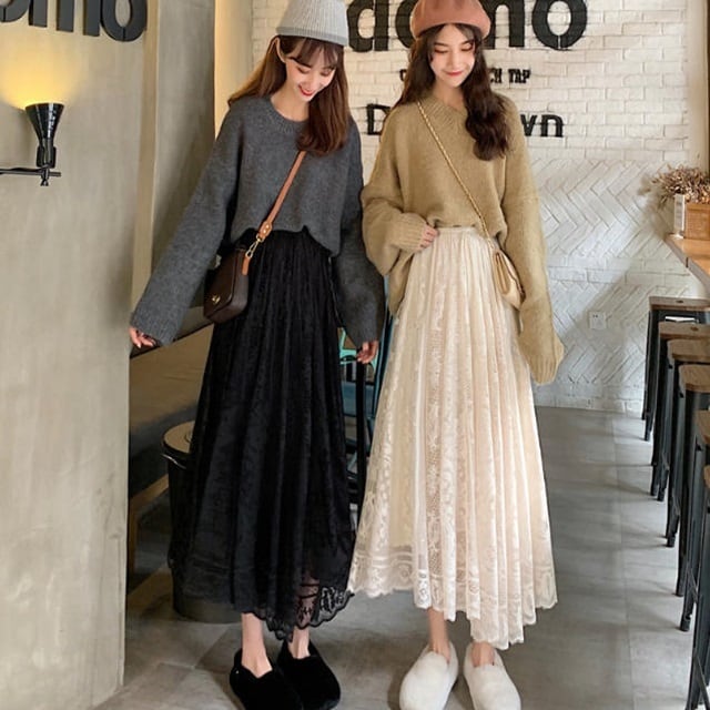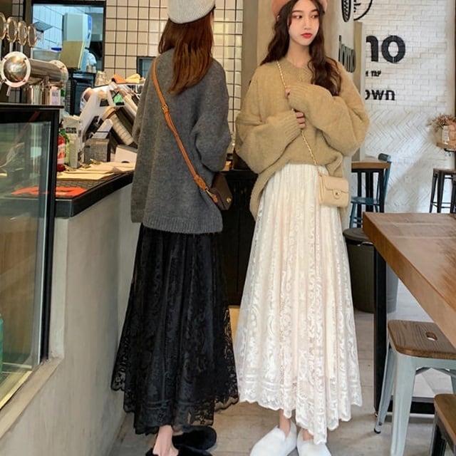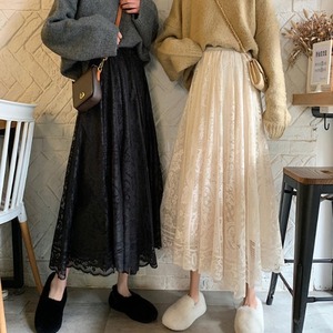 【送料無料】ロング丈 フレアスカート ウエストゴム 透け感 ゆったり レース ハイウエスト フェミニン ガーリー お出かけ デート 女子会 デイリー パーティ 春 SK-028IU