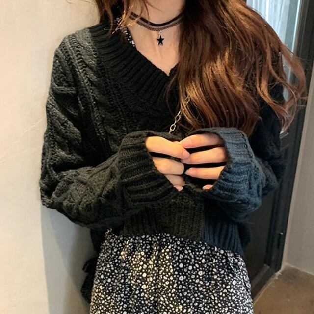 【送料無料】バックリボン ニット トップス ロング ワンピース 小花柄 Vネック ワントーン モノトーン セットアップ 大人可愛い ガーリー レトロ フェミニン お出かけ デート 着回し 普段使い 春 OP-037IU