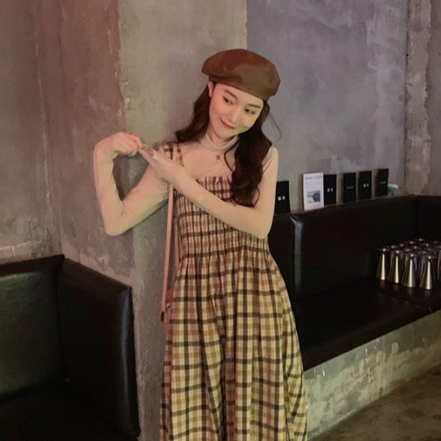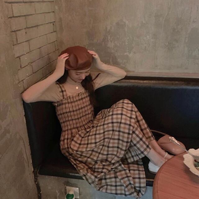 ベイクドカラーのチェック柄が可愛いジャンパースカート♪