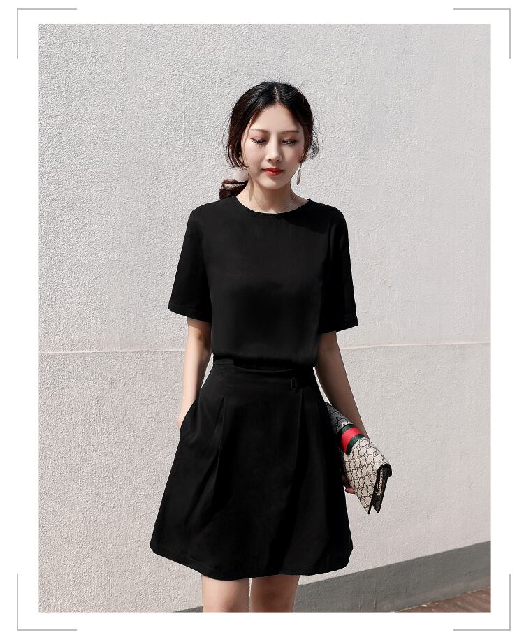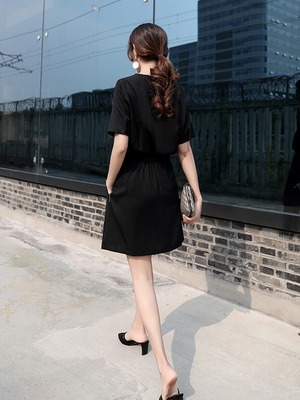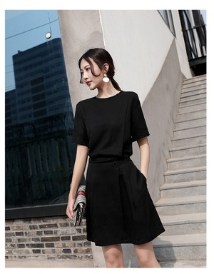 【送料無料】 ワンピース ミニワンピース ミニ丈 ラウンドネック フレアスカート ミニスカート ハイウエスト ブラック シンプル スタイルアップ OP-222KJ