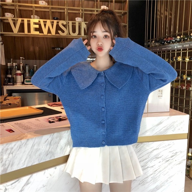 【送料無料】ニットカーディガン 折り襟 無地 長袖 キュート 大人可愛い ガーリー レディース OT-002PS