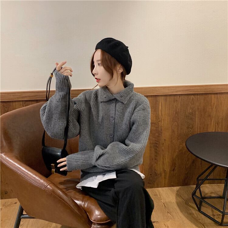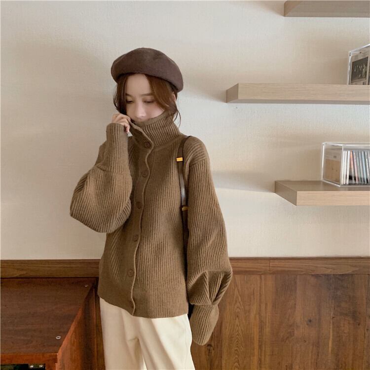 【送料無料】ゆったり ニット カーディガン ハイネック 長袖 レディース シンプル カジュアル OT-003PS