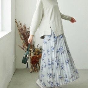 細いヒダで歩く度にひらひらなびく軽やかなシルエットがシーズンムードを盛り上げる1着。