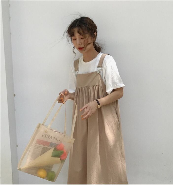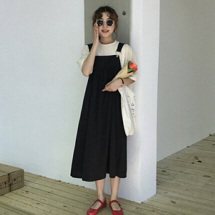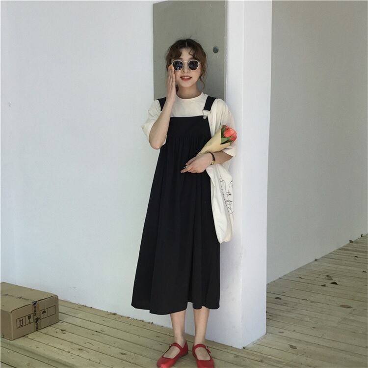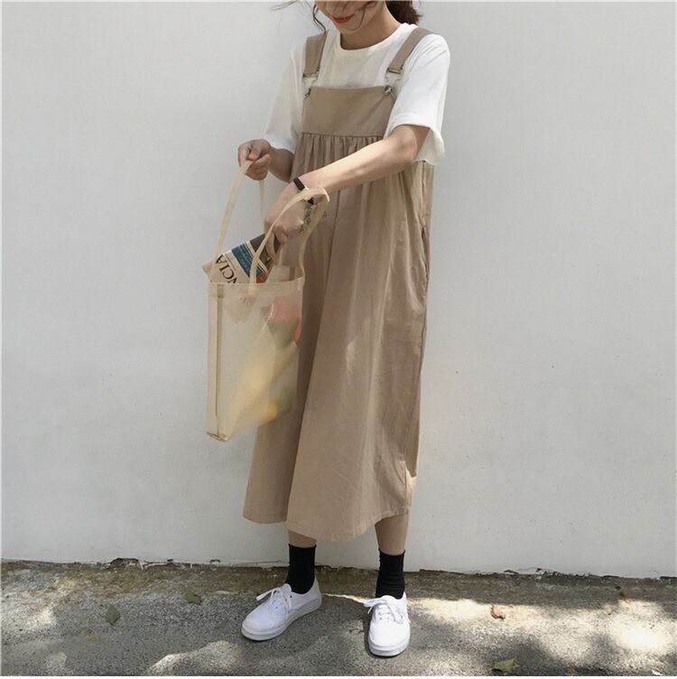 【送料無料】ナチュラル ジャンパースカート ロング丈 スクエアカラー レトロ ラフ カジュアル リラックス レディース サロペット 体型カバー 2色 AI-004KI