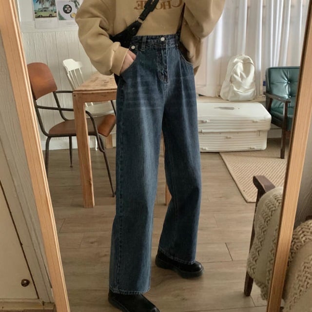 【送料無料】デニムパンツ ストレートパンツ ワイドレッグ ジーンズ ボトムス ハイウエスト アクティブ カジュアル シンプル ベーシック 大人可愛い 着回し デイリー 普段使い お出かけ デート 春夏 BM-008IU