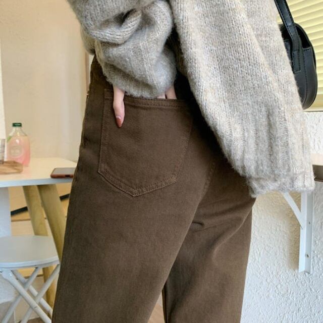 【送料無料】ストレートパンツ デニムパンツ ハイウエスト ボトムス カジュアル 無地 大人可愛い シンプル ベーシック ブラウン お出かけ デート 着回し デイリー 普段使い 春夏 BM-009IU