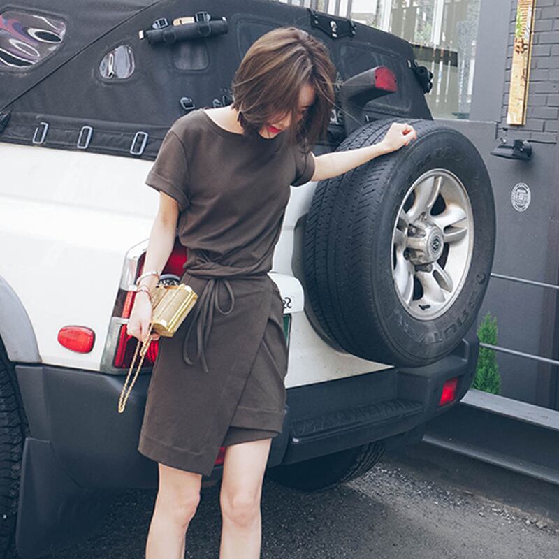 【送料無料】 ワンピース シンプル カジュアル 大人 ハイウエスト タイトスカート ミニワンピース アシンメトリー デート 女子会 OP-224KJ