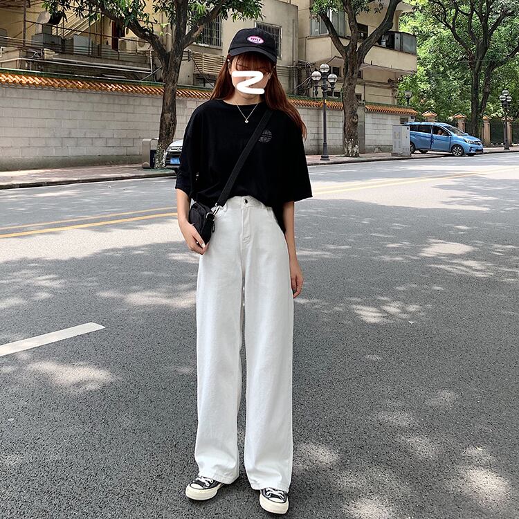 【送料無料】カラーデニムパンツ カジュアル ストレート ルーズパンツ 春 秋 ハイウエスト ロングボトム カラーボトム レディース ゆったり 体型カバー 春色 シンプル カジュアル 大人っぽい こなれ感 韓国 おしゃれ 着回し 通勤 通学 オフィス タウン デイリー お出かけ デート S M L ピンク ホワイト ブラック 3色 BM-005KI