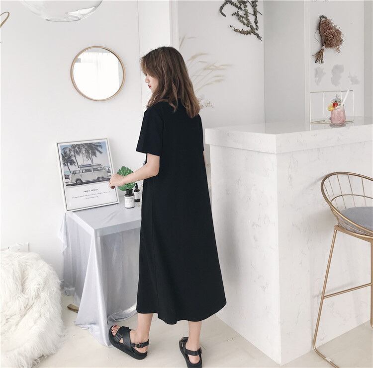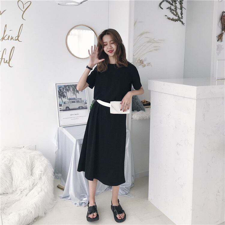【送料無料】 ワンピース ロングワンピース ロング丈 Tシャツワンピ ラウンドネック ホワイト ブラック カジュアル ラフ OP-237KJ