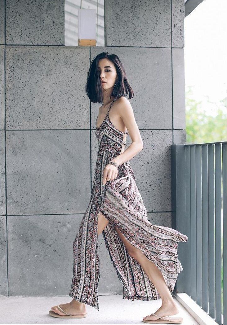 【送料無料】ワンピース ドレス ロング丈 スリット カジュアル リゾート ビーチ セクシー 肌見せ 大人可愛い オシャレ キュート ガーリー OP-040AU