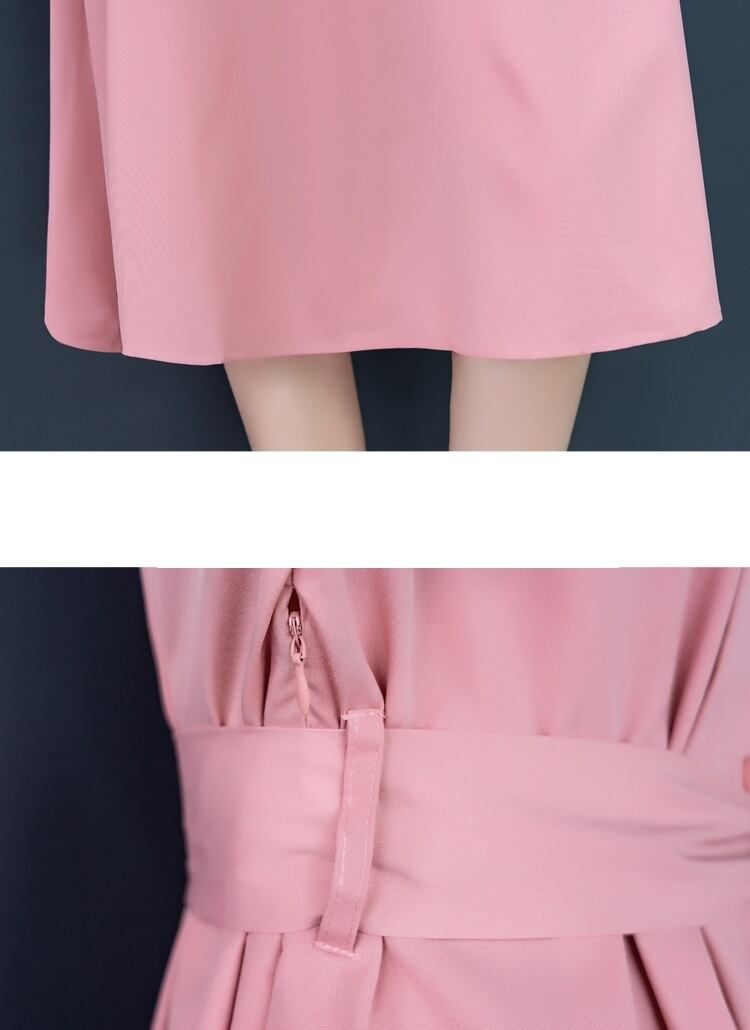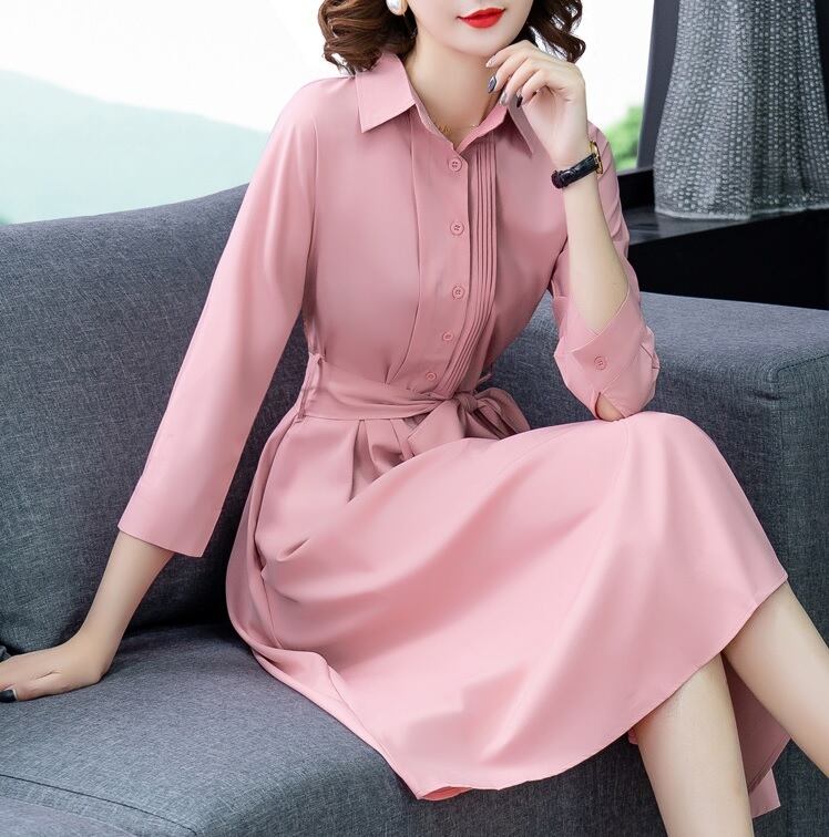 【送料無料】ウエストリボン Aライン シャツワンピース ロング丈 ハイウエスト 無地 レディース 大きめサイズ サイズ豊富 体型カバー シンプル きれいめ 大人っぽい エレガント 上品 清楚 フェミニン セミフォーマル タウン 通勤 同窓会 女子会 デート お出かけ S M L XL 2XL ピンク OP-018KI