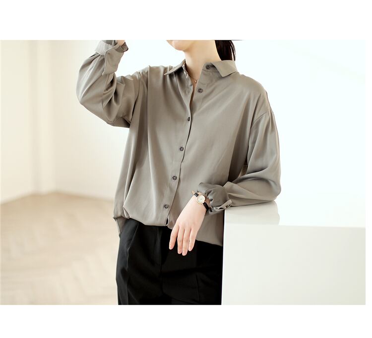 【送料無料】 シャツ ブラウス Vネック ホワイト グレー 春服 春夏 シンプル 大人 きれいめ デート 女子会 カジュアル エレガント 無地 TP-245KJ