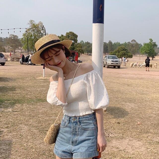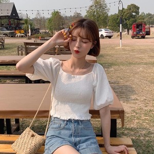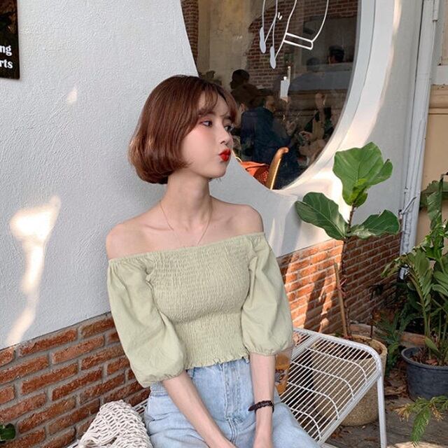【送料無料】ブラウス トップス シャーリング ショート丈 オフショルダー スクエアネック 2way 大人可愛い ガーリー キレイ目 着回し デイリー お出かけ デート シンプル ベーシック TP-102IU