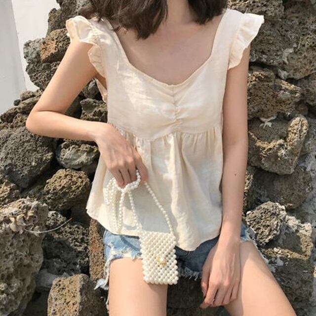 【送料無料】シャツ ブラウス トップス ノースリーブ バックコンシャス バックリボン レースアップ フリル ゆったり カジュアル セクシー ガーリー お出かけ デート 着回し デイリー 春夏 TP-103IU