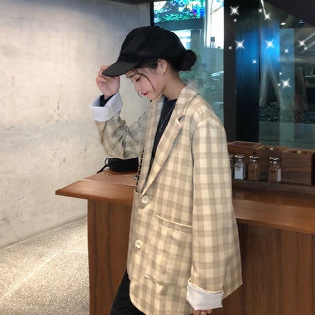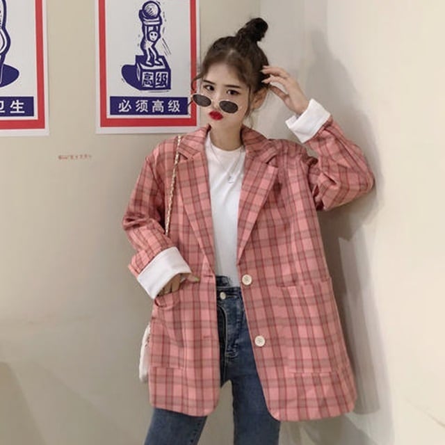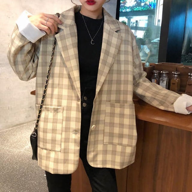 【送料無料】チェック柄 テーラードジャケット スプリングコート アウター ビッグシルエット オーバーサイズ こなれ感 大人可愛い カジュアル メンズライク おしゃれ ゆったり おしゃれ レトロ お出かけ デート 着回し デイリー 普段使い OT-024IU