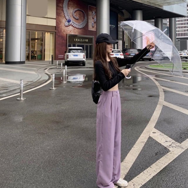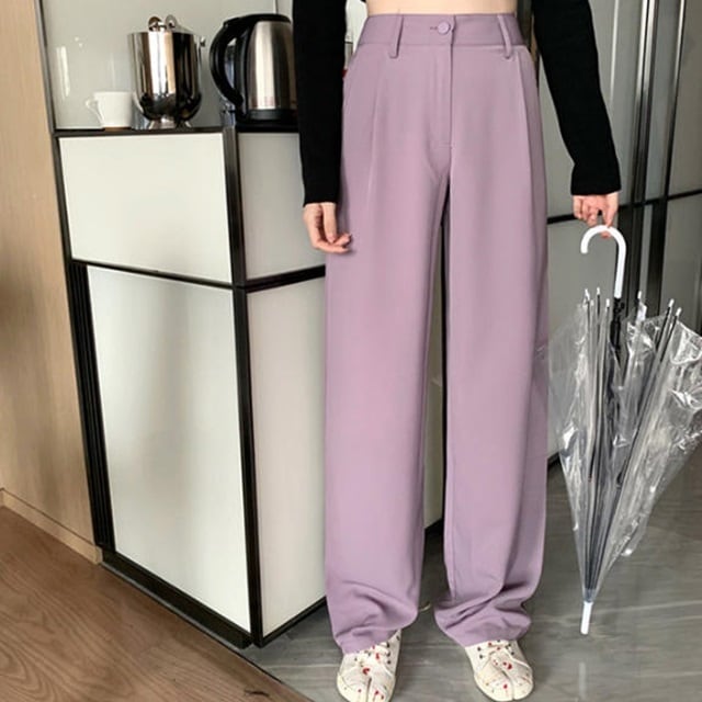 【送料無料】ラベンダーワイドパンツ ハイウエスト ストレートパンツ ロングパンツ ボトムス カジュアル 大人可愛い クール スタイリッシュ かっこいい シンプル ベーシック 無地 お出かけ デート 着回し デイリー 普段使い BM-012IU