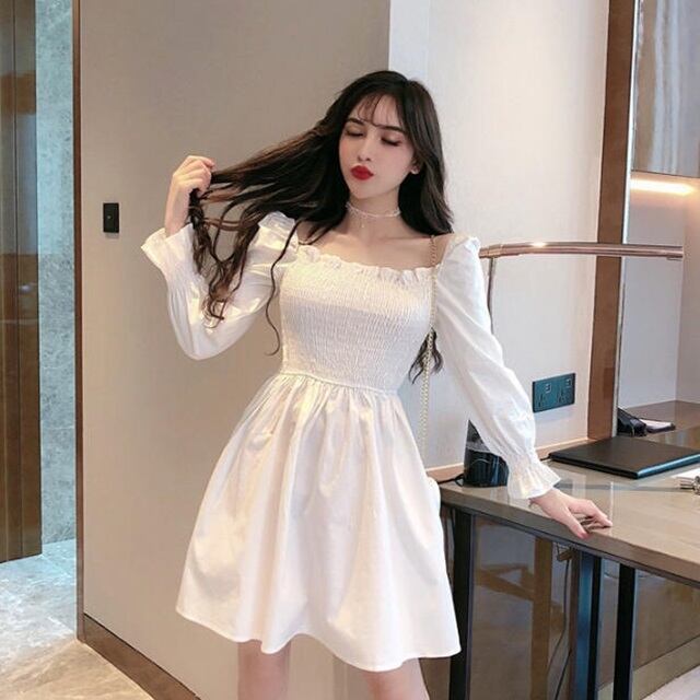 【送料無料】ワンピース ミニ丈 ショート丈 オフショルダー シャーリング パフスリーブ スクエアネック シンプル レトロ 2way フェミニン ガーリー エレガント キレイ目 大人可愛い Aライン お呼ばれ 二次会 パーティ 女子会 お出かけ デート デイリー OP-059IU