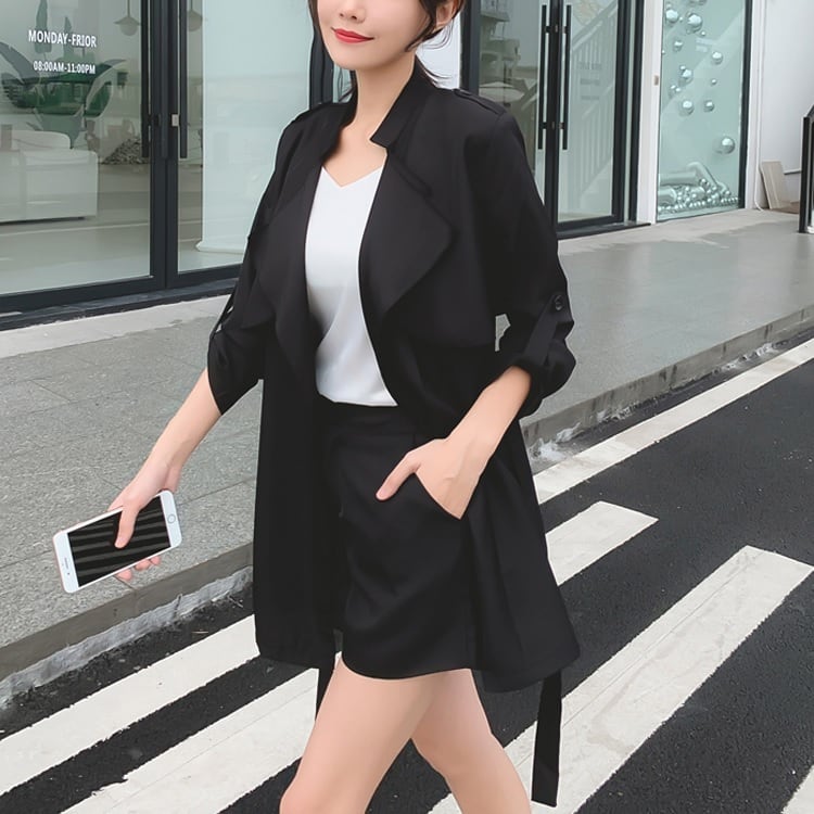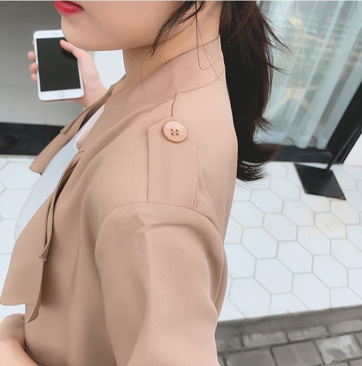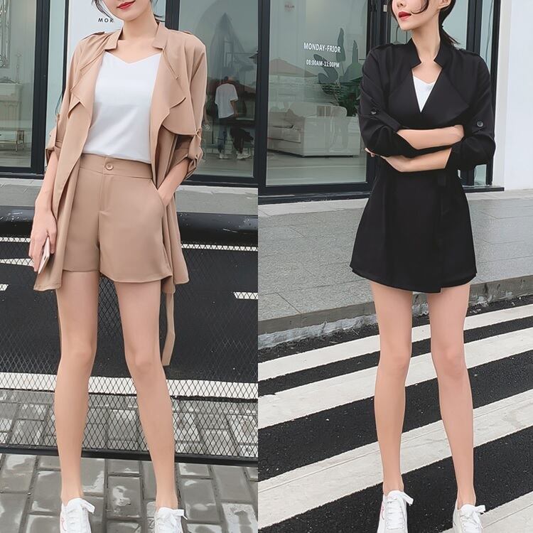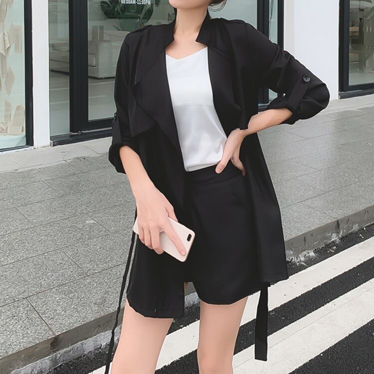 【送料無料】大人カジュアル セットアップ ジャケット ショートパンツ ツーピース スーツ 春 夏 秋 ロールアップ 韓国 レディース 着回し シック シンプル ベーシック 無地 スタイリッシュ デイリー タウン 通勤 通学 女子会 お出かけ S M L XL カーキ ブラック 2色 ST-001