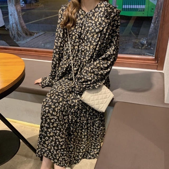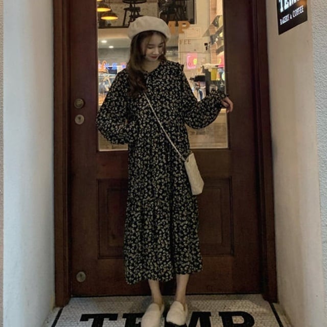 落ち着いたダークトーンカラーの花柄ワンピース♪