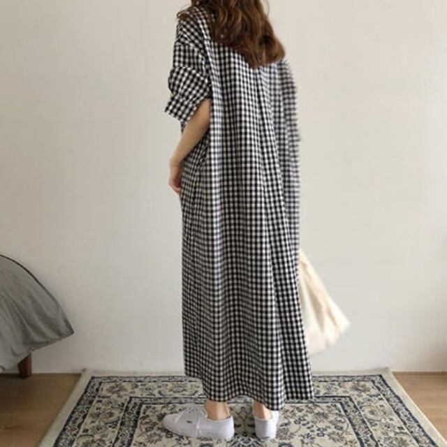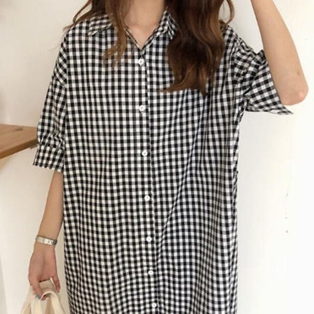 【送料無料】ギンガムチェック ワンピース シャツワンピース 羽織 アウター ロング マキシ丈 ギンガムチェック 半袖 シンプル ベーシック カジュアル ガーリー 半袖 体型カバー ゆったり 着痩せ デイリー 着回し お出かけ デート 夏コーデ OP-104IU