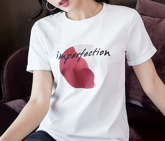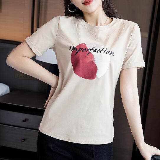 【送料無料】4カラー 半袖 デザイン Tシャツ コットン カットソー 幾何学模様 テキスト入 丸首 プルオーバー 韓国トレンド 大人カジュアル ベーシック オシャレ カラフル 春夏 アプリコット ホワイト ピンク ブラック 通学 レジャー スポーティ 旅行 普段使い シティー デート お出かけ 女子会 デイリー TP-209KW