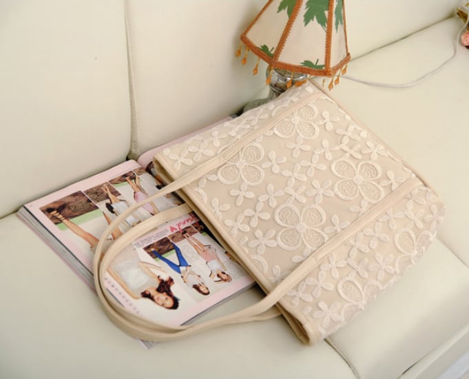【送料無料】花柄刺繍 トートバッグ 肩掛け 手提げ ショルダーバッグ 機能ポケット 韓国トレンド A4サイズ 雑誌 書類収納 アプリコット ブラック 全2色 通勤 通学 レジャー ショッピング カジュアル 旅行 デイリー BG-024KW