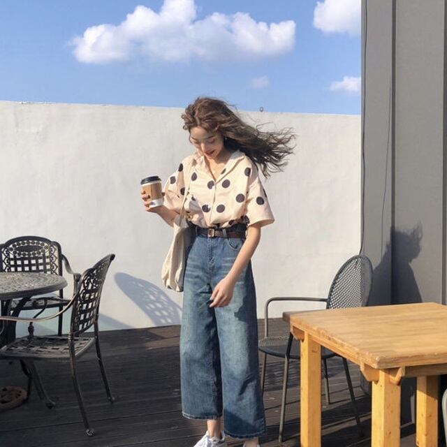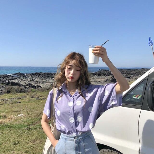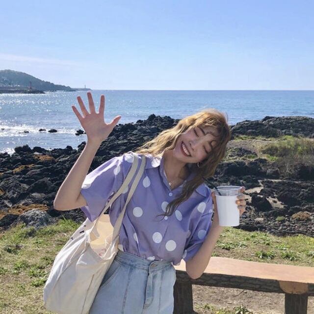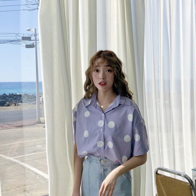 大き目のドット柄が目を惹くゆったりブラウス♪