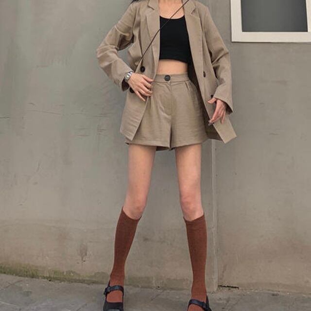 【送料無料】セットアップ ジャケット ショートパンツ ハイウエスト スタイリッシュ マニッシュ 2点セット 大人女子 大人可愛い 無地 ベーシック シンプル ワントーンコーデ メンズライク ボーイフレンド レトロ お出かけ デート 着まわし デイリー 普段使い ST-007IU