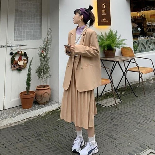 【送料無料】セットアップ テーラード ジャケット プリーツスカート ロングスカート ワントーンコーデ 大人可愛い きれいめ カジュアル フェミニン レトロ ガーリー お出かけ デート 普段使い デイリー ST-013IU