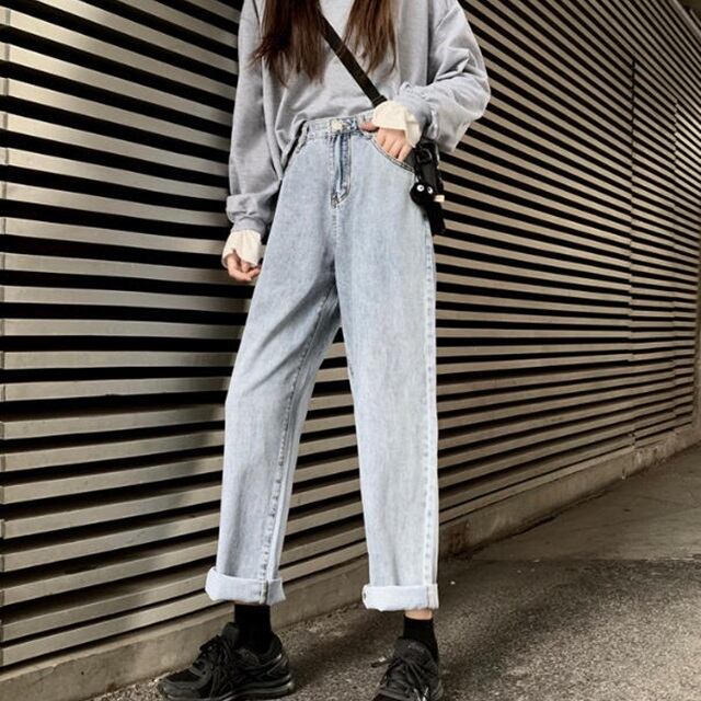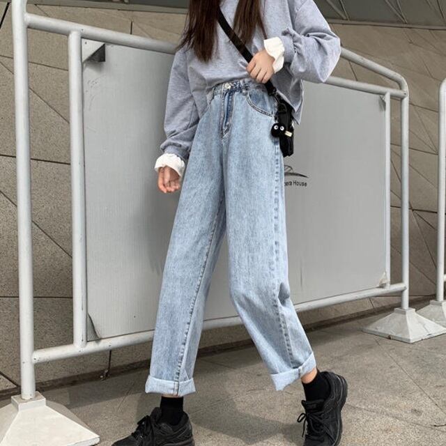 【送料無料】ウォッシュド ジーンズ デニムパンツ ロールアップ ハイウエスト ストレート カジュアル 大人可愛い シンプル ベーシック おしゃれ お出かけ デート 普段使い デイリー 着回し オールシーズン BM-023IU