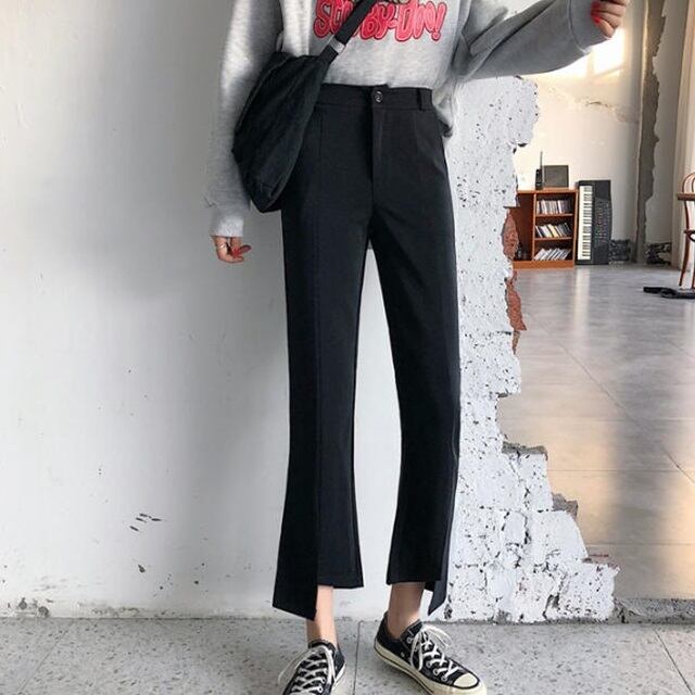 【送料無料】テーパードパンツ ロングパンツ ストレート ボトムス ハイウエスト アシンメトリー おしゃれ 個性的 無地 大人可愛い 美脚 脚長 シンプル 普段使い デイリー お出かけ デート 通勤 着まわし BM-029IU