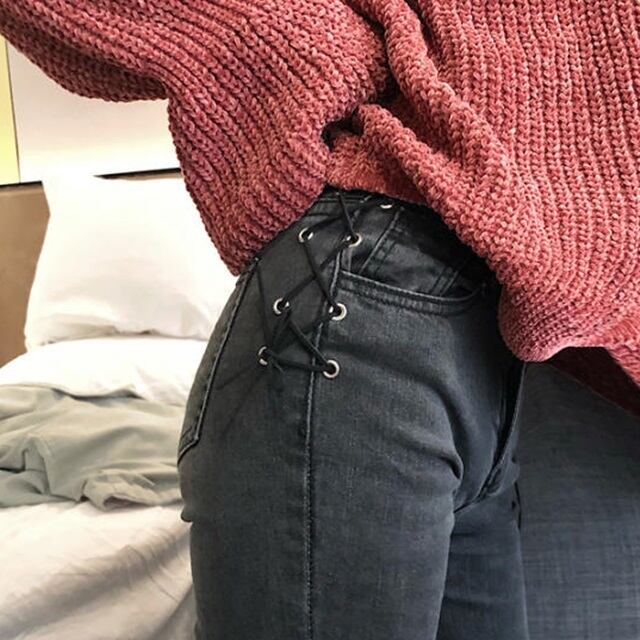 【送料無料】デニムパンツ スキニーパンツ ボトムス ハイウエスト サイドレースアップ カジュアル 大人可愛い キレイ目 上品 シンプル おしゃれ ベーシック お出かけ デート 普段使い 着まわし デイリー オールシーズン ロングシーズン BM-034IU