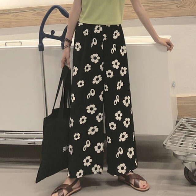【送料無料】花柄ワイドパンツ ストレート イージーパンツ ボトムス 大きいサイズ ゆったり リラックス モノトーン カジュアル リゾート おしゃれ 個性的 大人可愛い ガーリー フェミニン お出かけ デート ビーチ 普段使い 着まわし デイリー BM-037IU