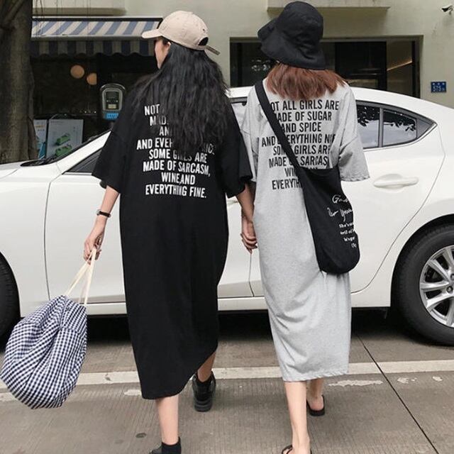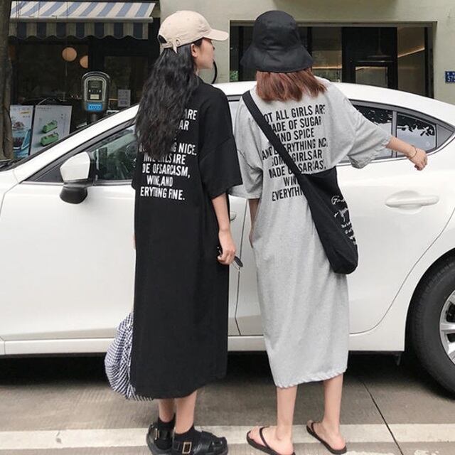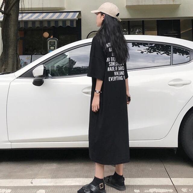 【送料無料】Tシャツワンピース ロング ルーズ 英字 ロゴ バックロゴ オーバーサイズ 大きいサイズ ゆったり 半袖 シンプル ベーシック レトロ カジュアル 大人可愛い ルームウェア お出かけ デート ラフコーデ 普段使い デイリー 着回し OP-109IU