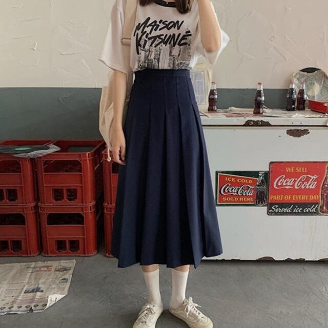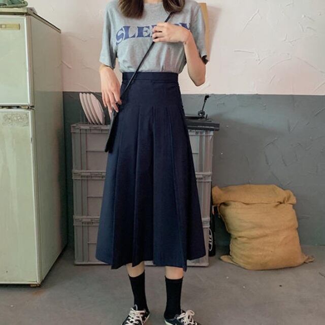 【送料無料】プリーツスカート ロング ミモレ丈 ハイウエスト 学生風 フレア Aライン カジュアル クラシカル レトロ 大人可愛い 無地 シンプル ベーシック お出かけ デート 普段使い デイリー 着回し SK-052IU