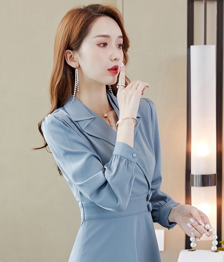 【送料無料】シンプル ロングワンピース フレア Aライン ハイウエスト 無地 ベーシック 春 秋 長袖 レディース きれいめ フェミニン エレガント 上品 大人可愛い トレンド感 デイリー タウン 通勤 通学 同窓会 女子会 デート お出かけ S M L XL グレーブルー OP-066KI