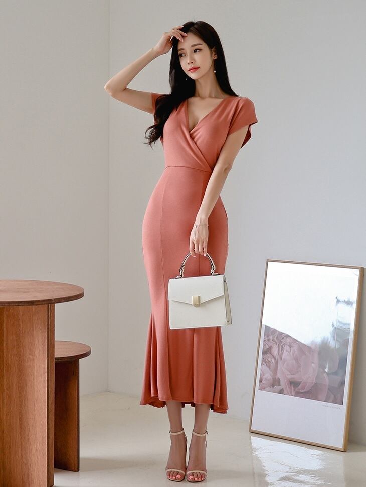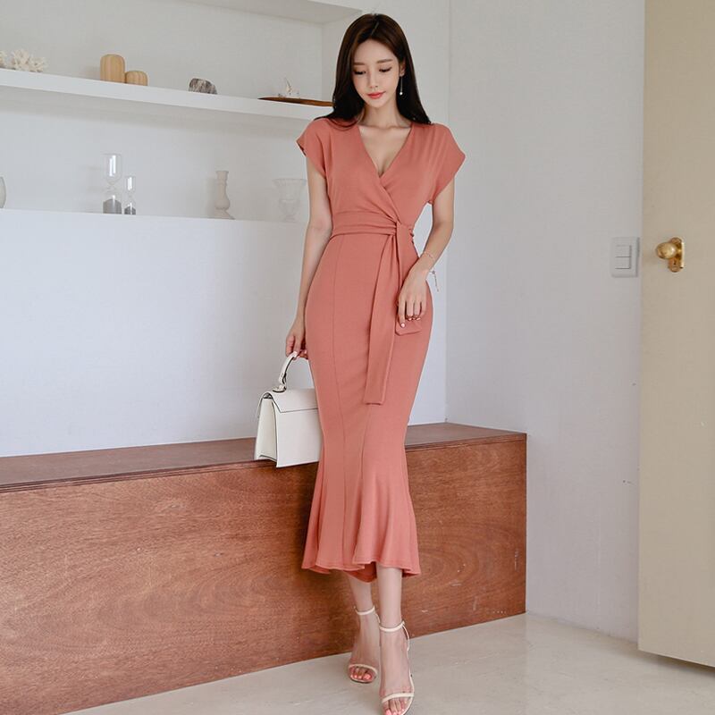 【送料無料】 ウエストリボン Vネック ワンピース ペンシル ロング丈 ハイウエスト 無地 ベーシック 半袖 レディース きれいめ フェミニン エレガント 上品 大人可愛い トレンド感 デイリー タウン セミフォーマル 通勤 通学 同窓会 女子会 デート お出かけ S M L XL ワンカラー OP-067KI