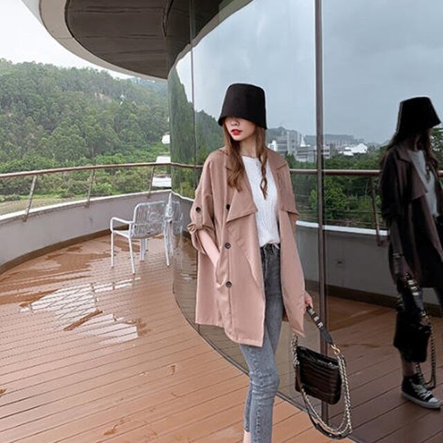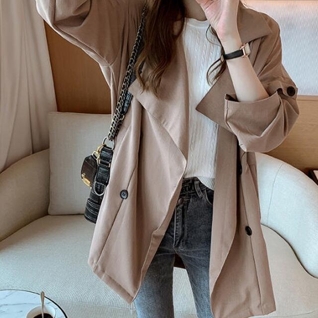 【送料無料】テーラードジャケット 春コート アウター トレンチ風 ダブルボタン 無地 キレイ目 ゆったり 大人可愛い レトロ カジュアル シンプル ベーシック お出かけ デート デイリー 普段使い 着回し OT-064IU