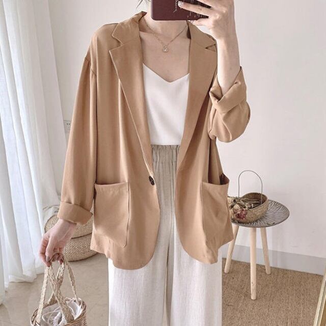 【送料無料】テーラードジャケット 春コート アウター 羽織 淡いカラー 薄手 ゆったり 大人可愛い レトロ カジュアル 無地 ベーシック シンプル お出かけ デート デイリー 普段使い 着回し 通勤 OT-070IU